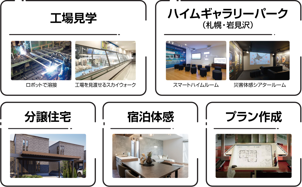 ・ スタンプラリーは「北海道セキスイハイムの住宅展示場の見学」「セキスイハイム岩見沢工場の見学」「ハイムギャラリーパーク(札幌・岩見沢)の見学」「分譲住宅の見学」「宿泊体感棟の宿泊体験」「プランの作成提案」が対象です。