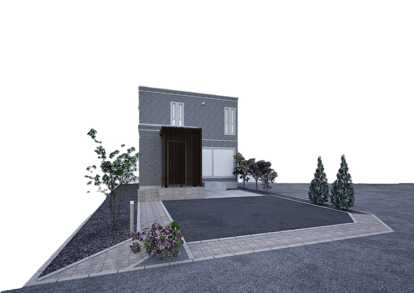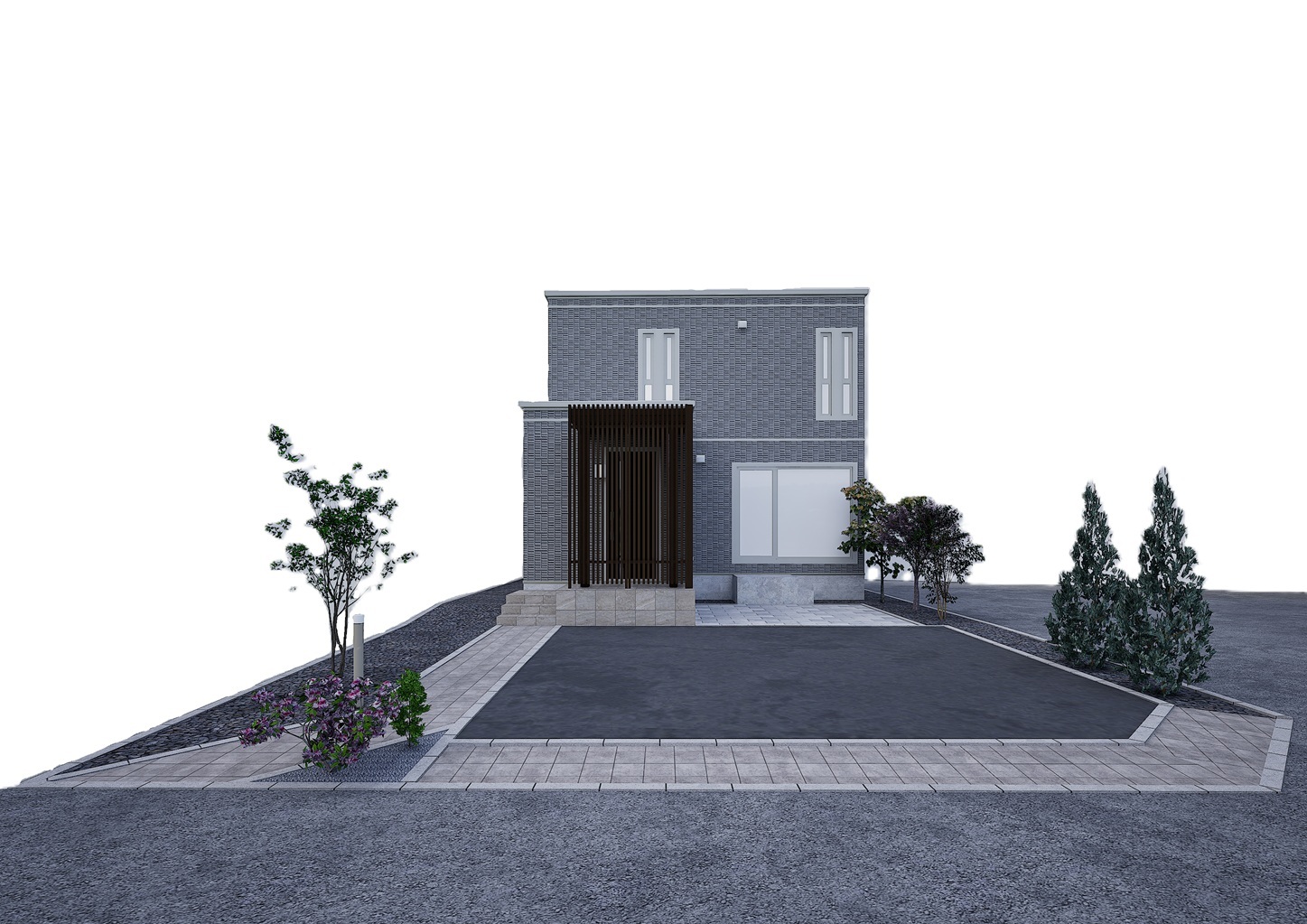 ・エクステリア(アスファルト舗装・民地石・ビリ砂利・カラー砂利・防草シート・植栽・インターロッキング・ポールライト)