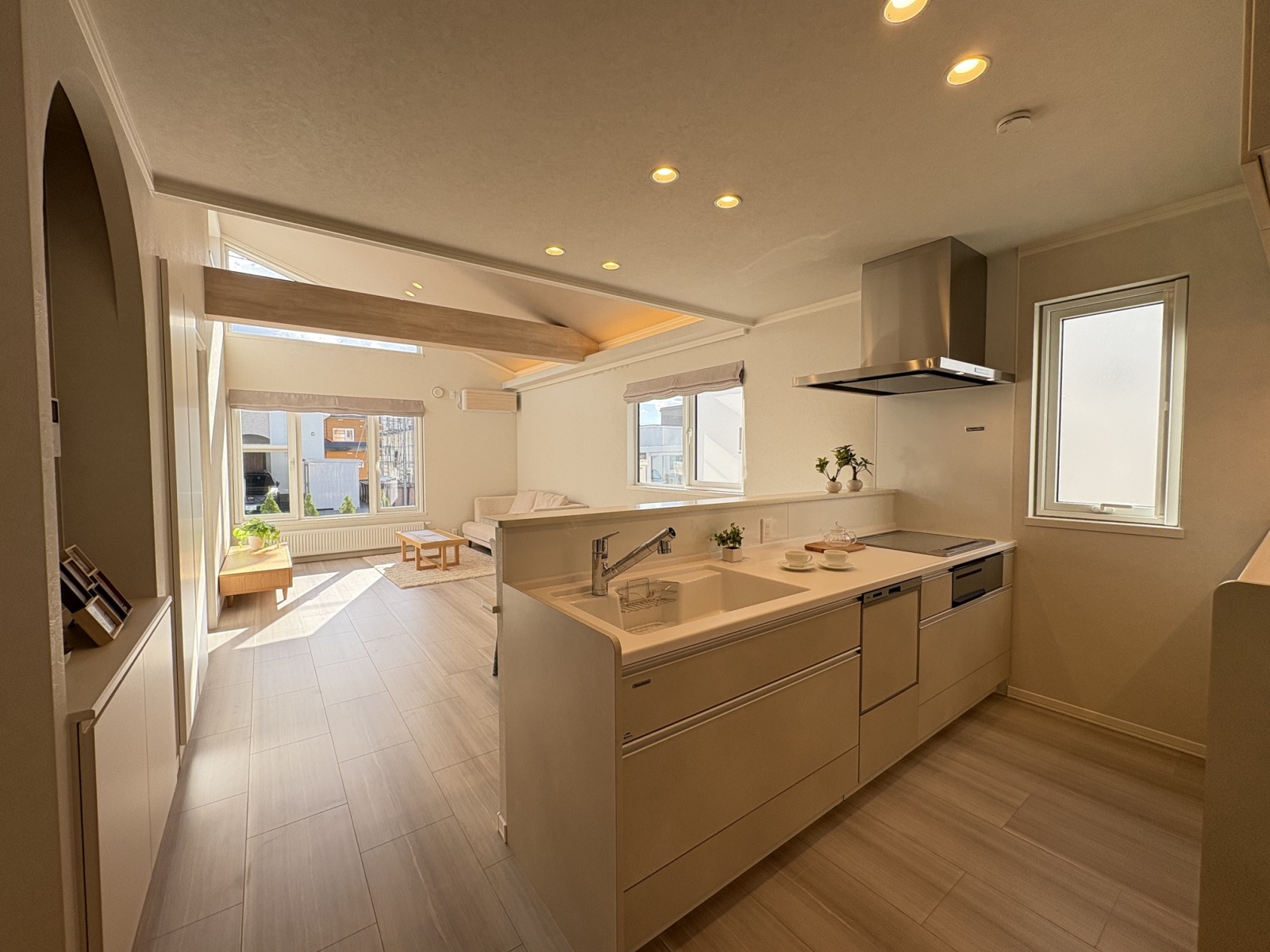 傾斜天井により開放感を感じるワンフロアの暮らし
