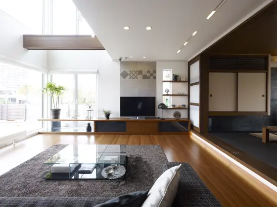 ・大開口・吹き抜けで明るいリビング